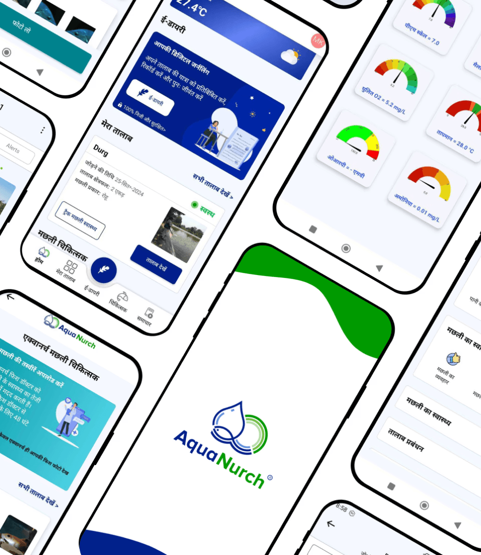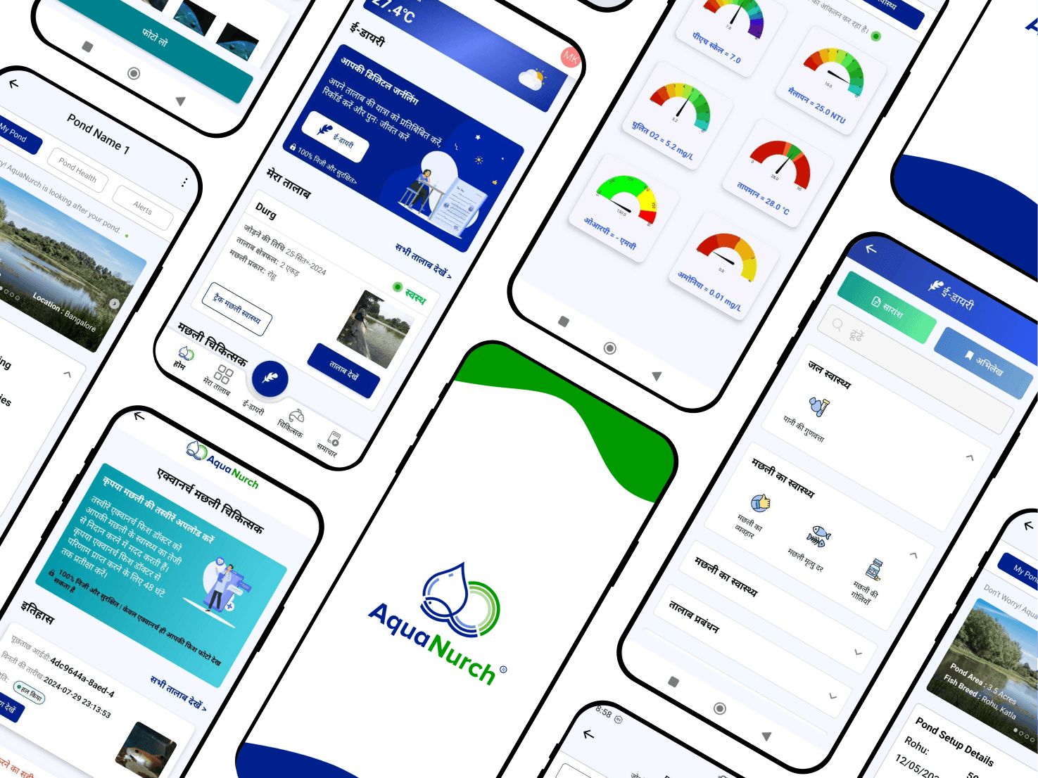 Led end-to-end product design for Aquanurch, a B2C mobile app delivering real-time insights for fish farmers; product is live on the Play Store. Link