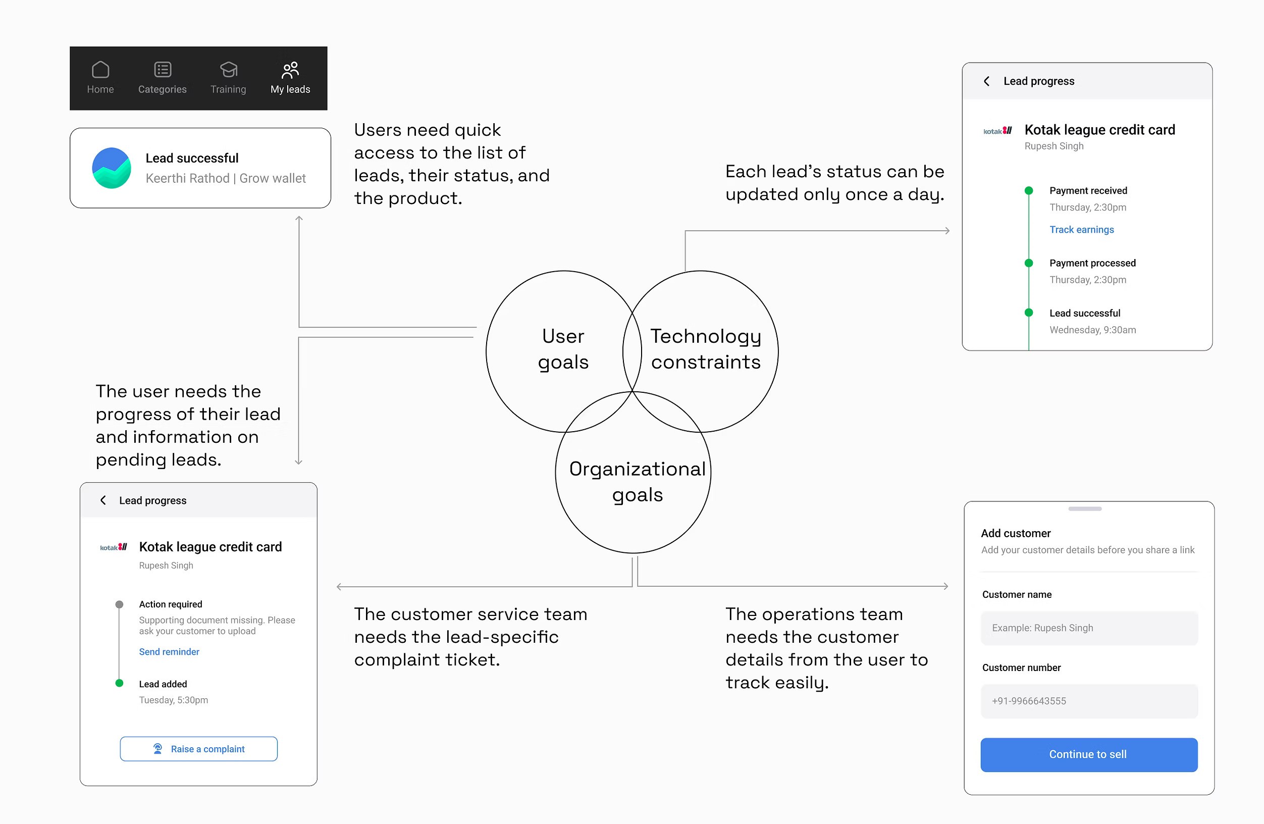 He’s our founding user, managing a network of 3,500+ customers as of 2021. By maintaining a daily journal to track his activities on the app, he provided valuable insights that led me to recognise the need for a CRM system during our design testing.