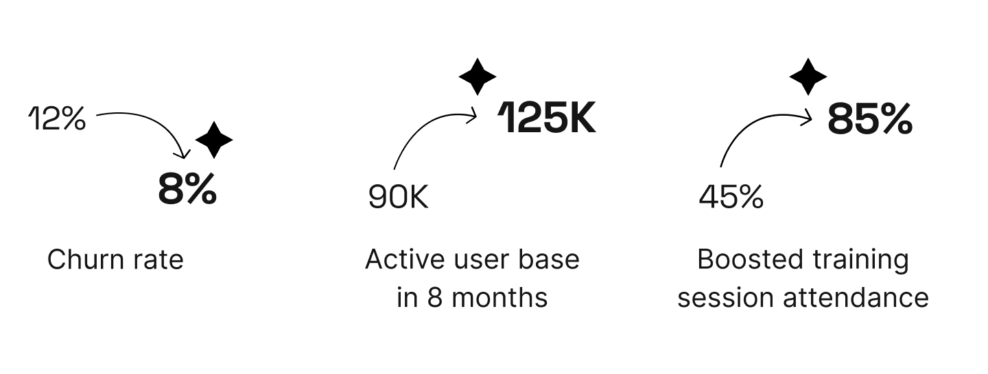 Boosted training session attendance from 45% to 85%+, directly improving user activation